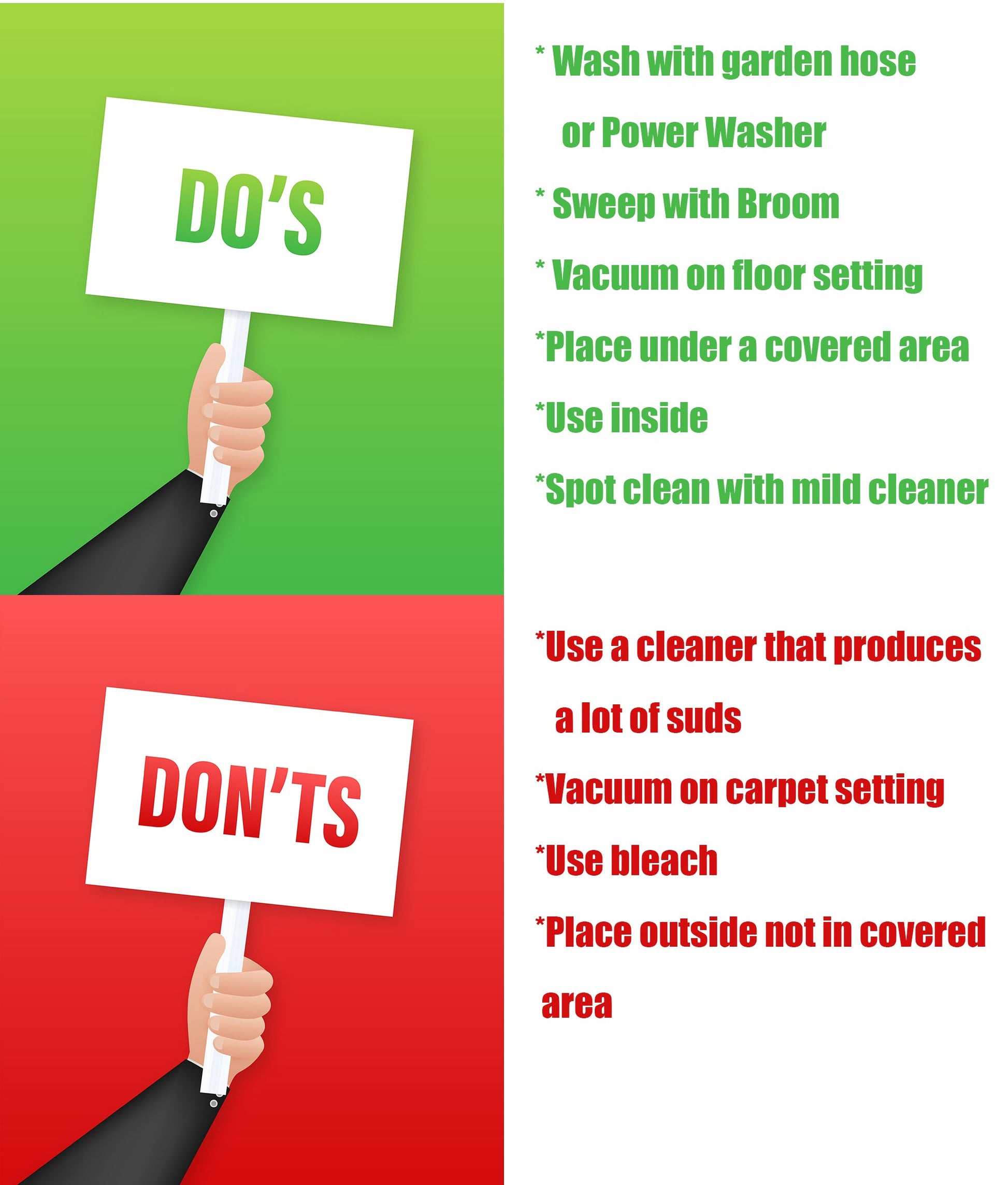- Hose off or power wash for deep cleaning