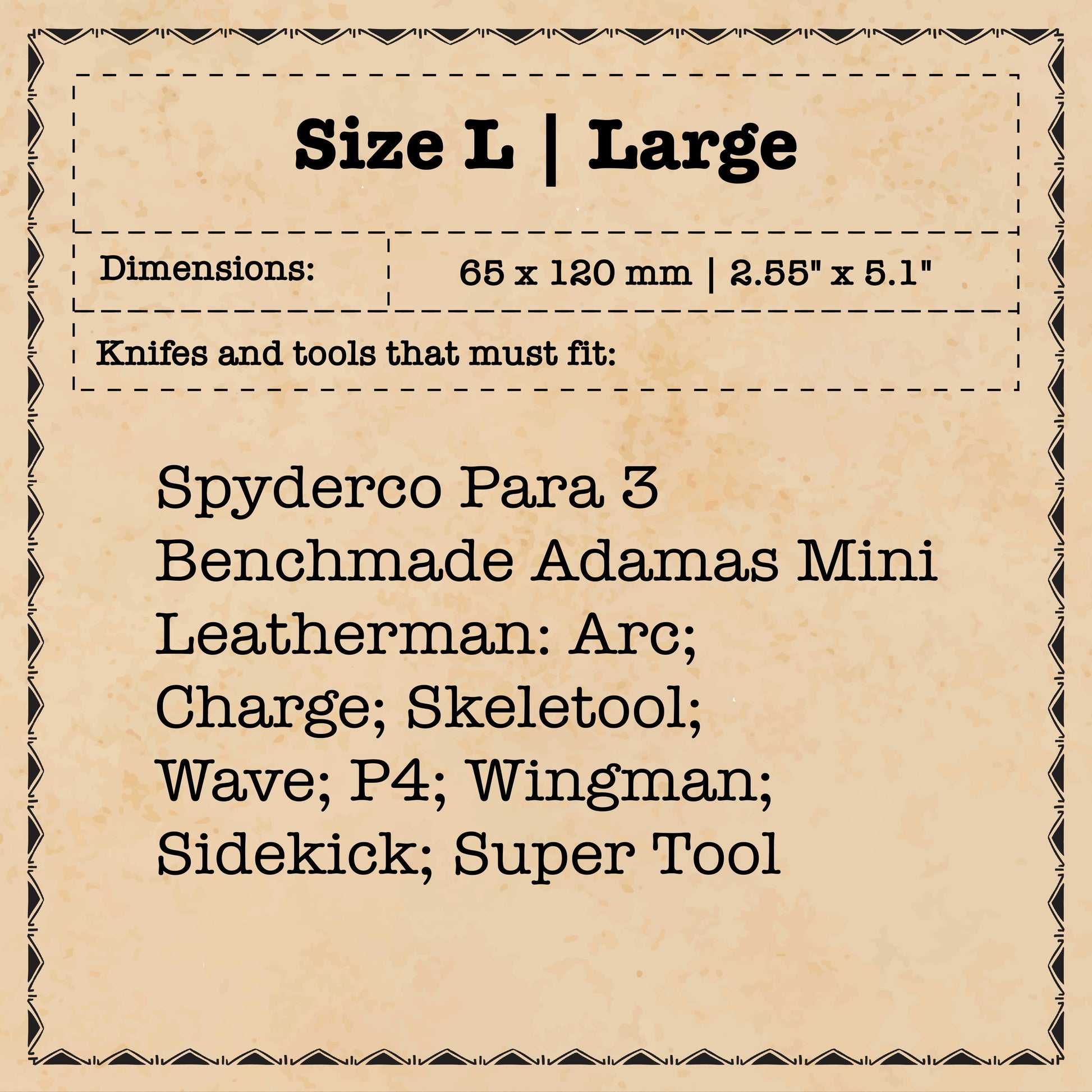 - Fits: Spyderco Para 3, Benchmade Adamas Mini, Leatherman Arc, Wave, Skeletool, Charge, P4, Sidekick, Super Tool, Wingman, or similar