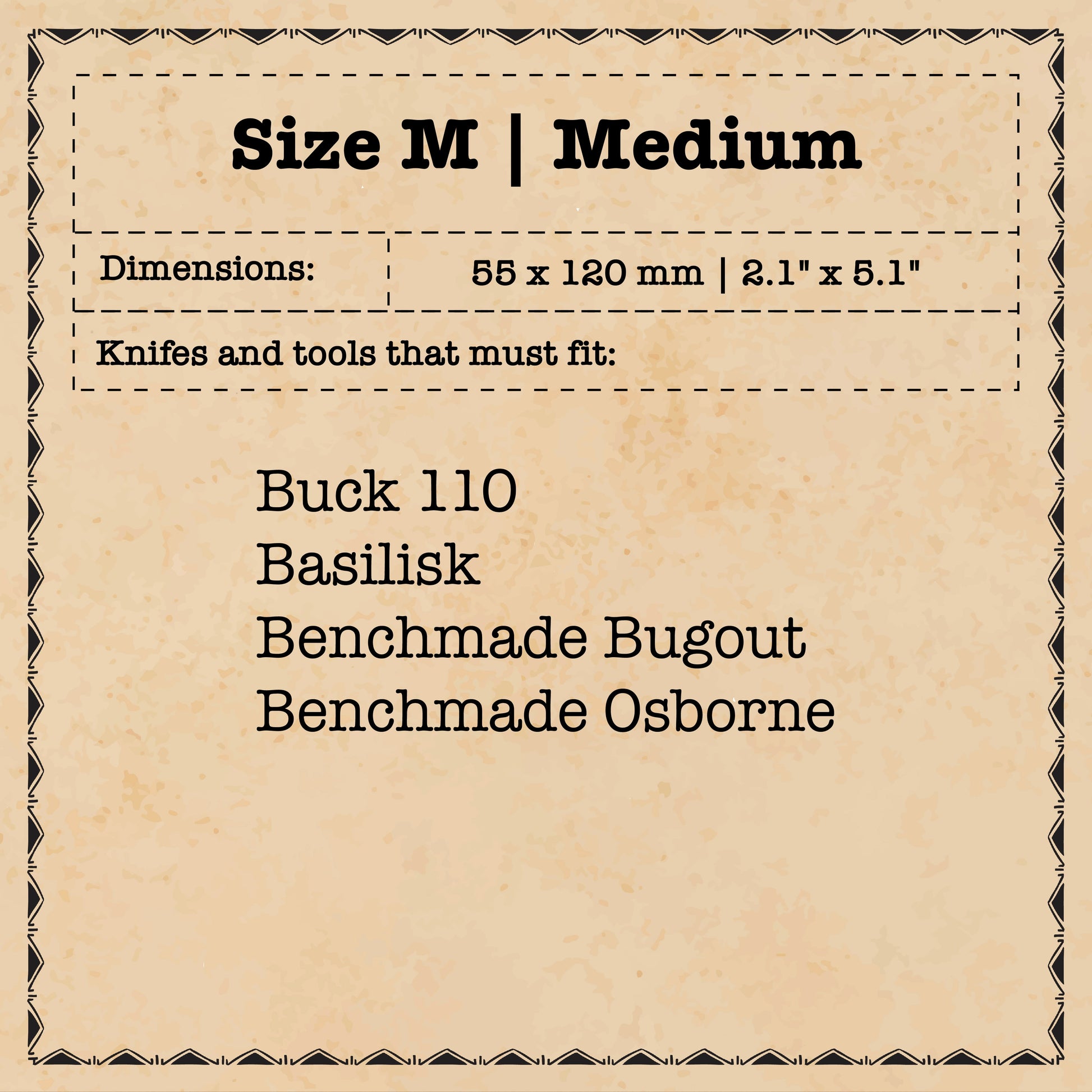 - Fits: Buck 110, Benchmade Bugout, Osborne, or similar